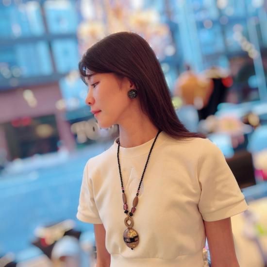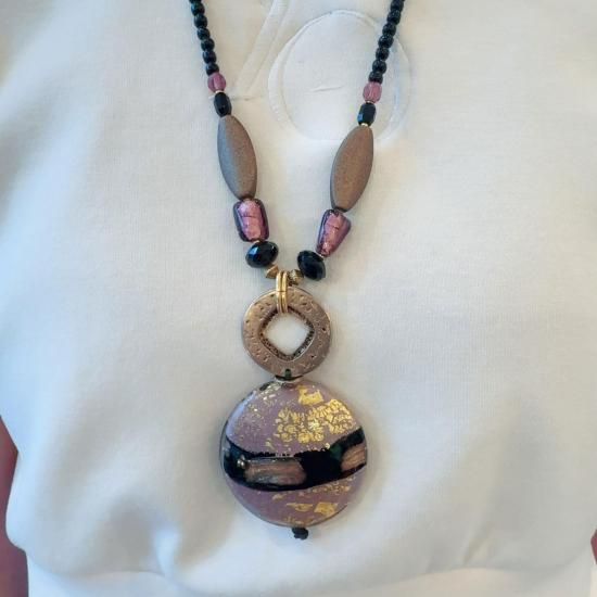 バイオレットの中に少し金箔が入っているのでエキゾチックな感じがするおしゃれなネックレスです。
