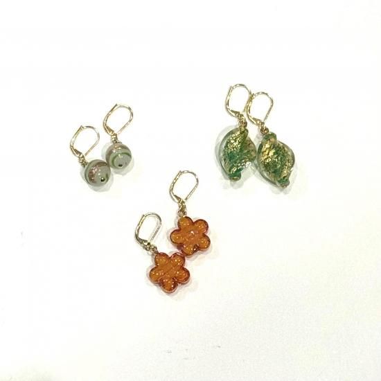 どのモチーフも可愛すぎて、迷う楽しさも味わえるベネチアンガラスのピアスです。